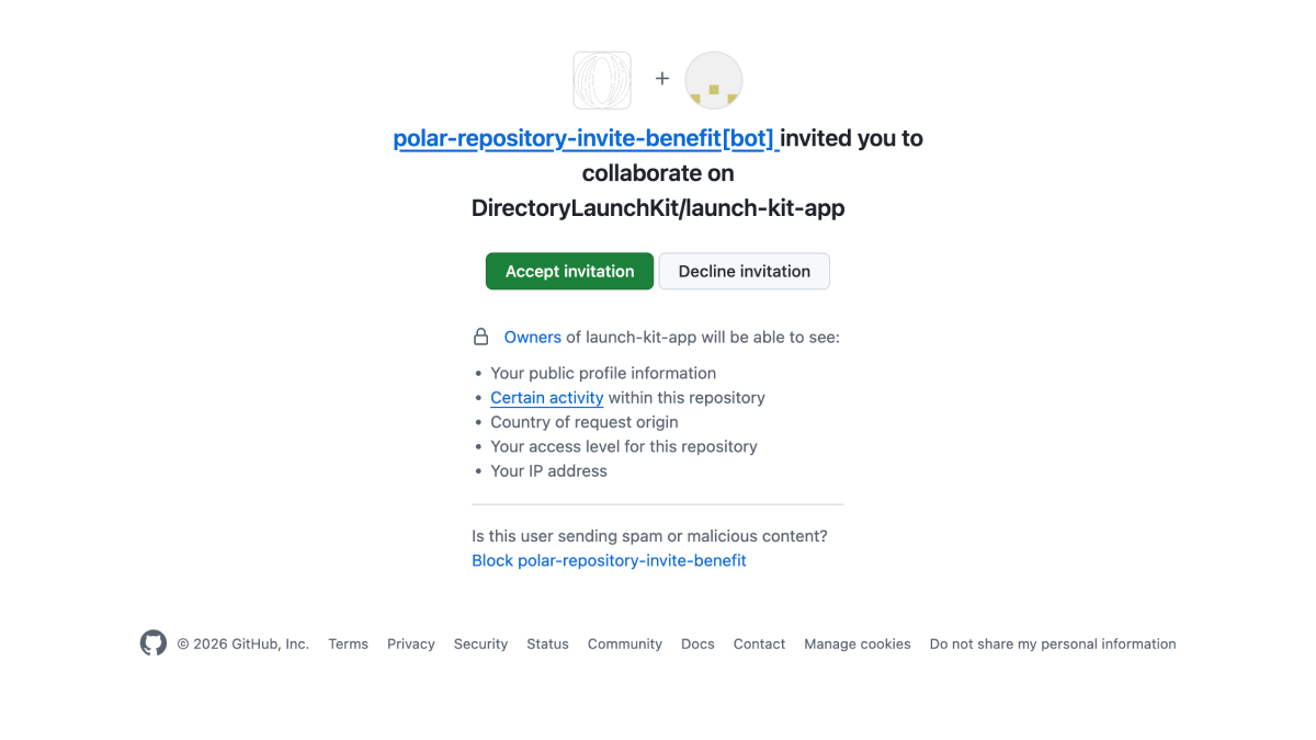 - You get two emails: order confirmation from Polar + repository invitation from GitHub