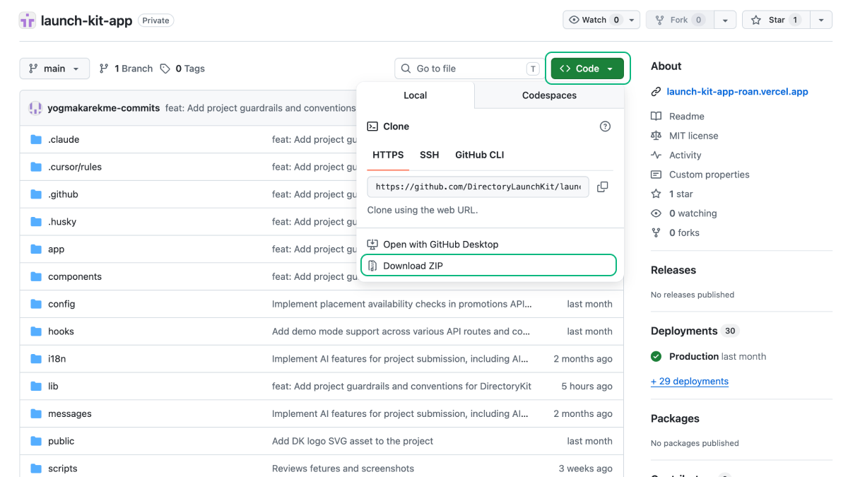 - «I don't want to use Git CLI / terminal» → Download ZIP (Option C) — but know that you'll need a Git repo when you're ready to deploy to Vercel